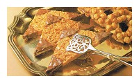 Faire fondre le beurre, mélanger avec le sucre et battre en crème. Ajouter les noix moulues grossièrement puis la farine et incorporer les blancs en neige. Verser la préparation dans un moule large de manière à avoir environ 2 cm d’épaisseur.